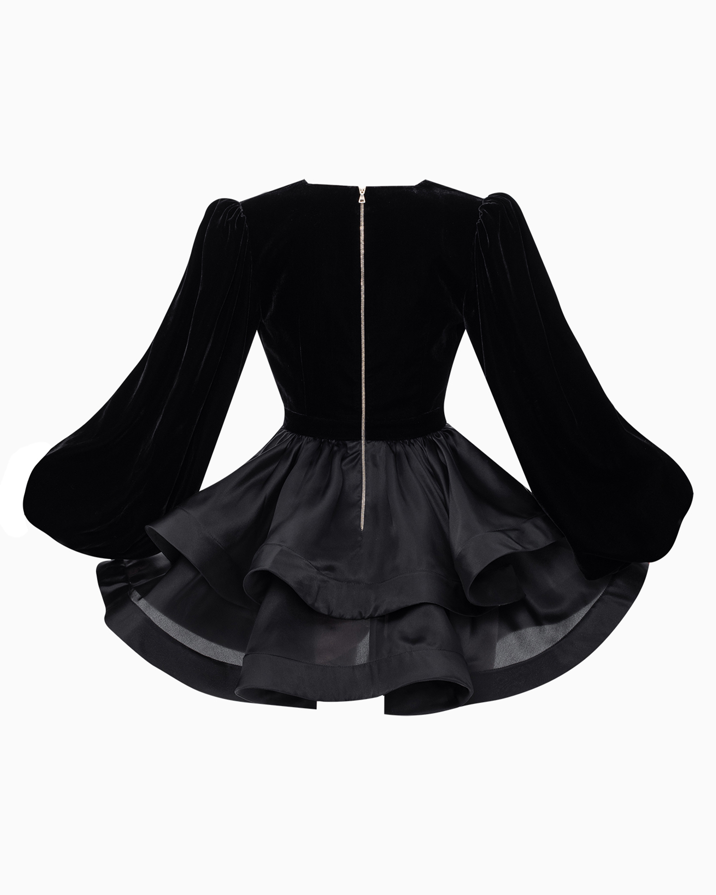 Наше поистине легендарное платье в новом исполнении. Верхняя часть выполнена из натурального бархата, а нижняя из шелковой органзы. Очень глубокий, но при этом максимально комфортный вырез на декольте, у которого предусмотрена петелька, на случай если вы захотите отрегулировать глубину. Две пышные юбки, с регилином внутри изящно подчеркнут вашу сексуальность и женственность.